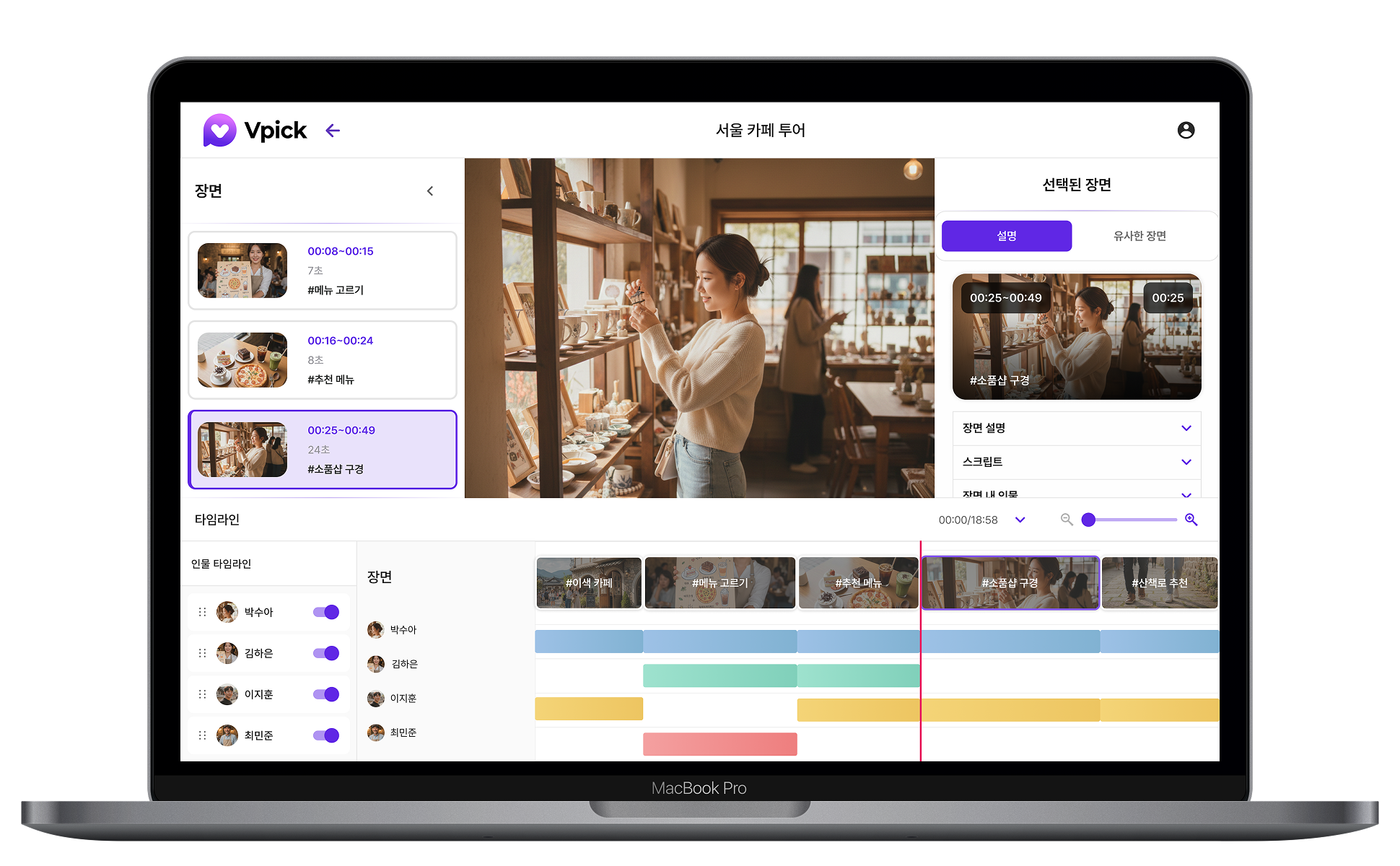 타임라인에 인물 태그가 표시되어,누가 등장하는지 빠르게 확인할 수 있습니다