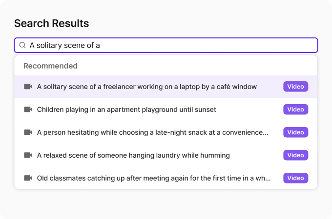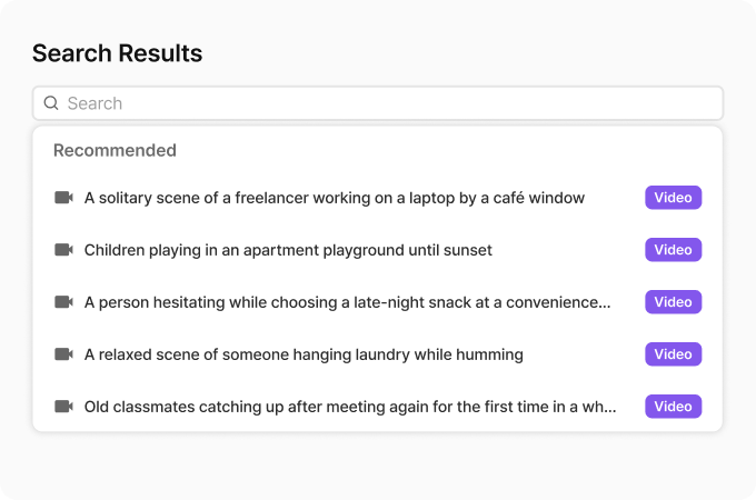 검색된 장면은 썸네일·설명·정확도와