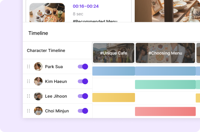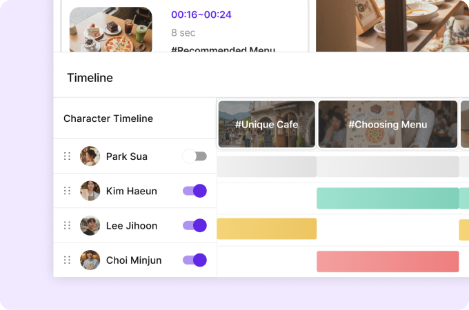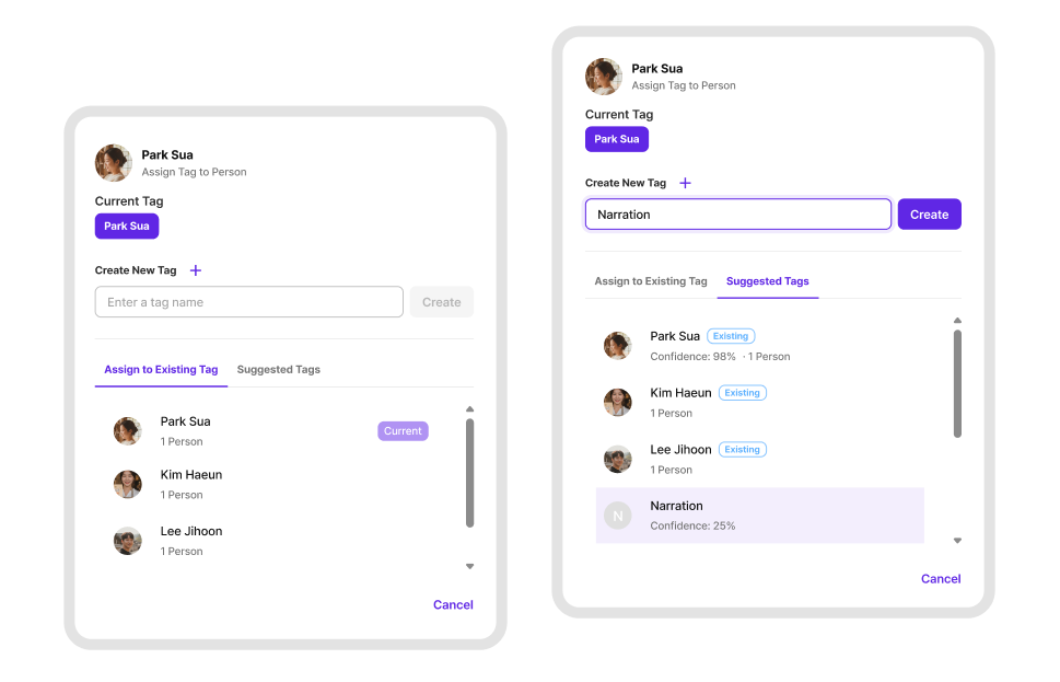 AI가 영상 속 등장 인물을 자동으로 식별해요.