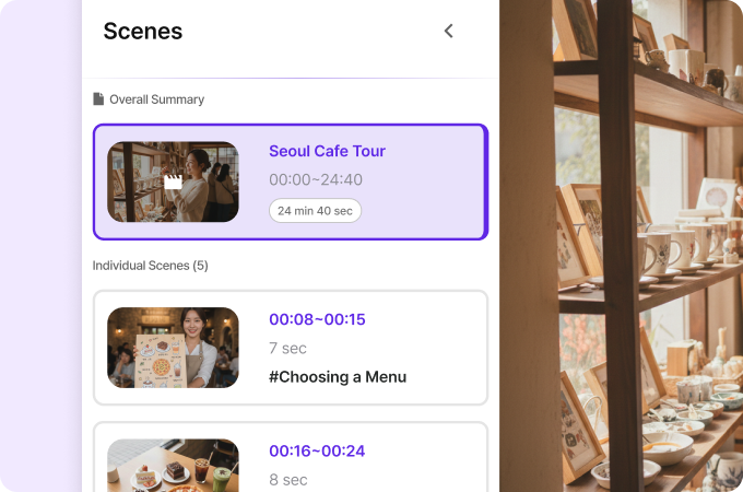 긴 영상을 장면별로 나눠 리스트로 보여줘요.