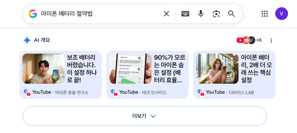 💡효과: 사용자가 “아이폰 배터리 절약법”을 검색했을 때, 해당 내용이 나오는 3분 20초 구간으로 바로 연결되는 ‘타임스탬프 노출’이 가능해집니다.