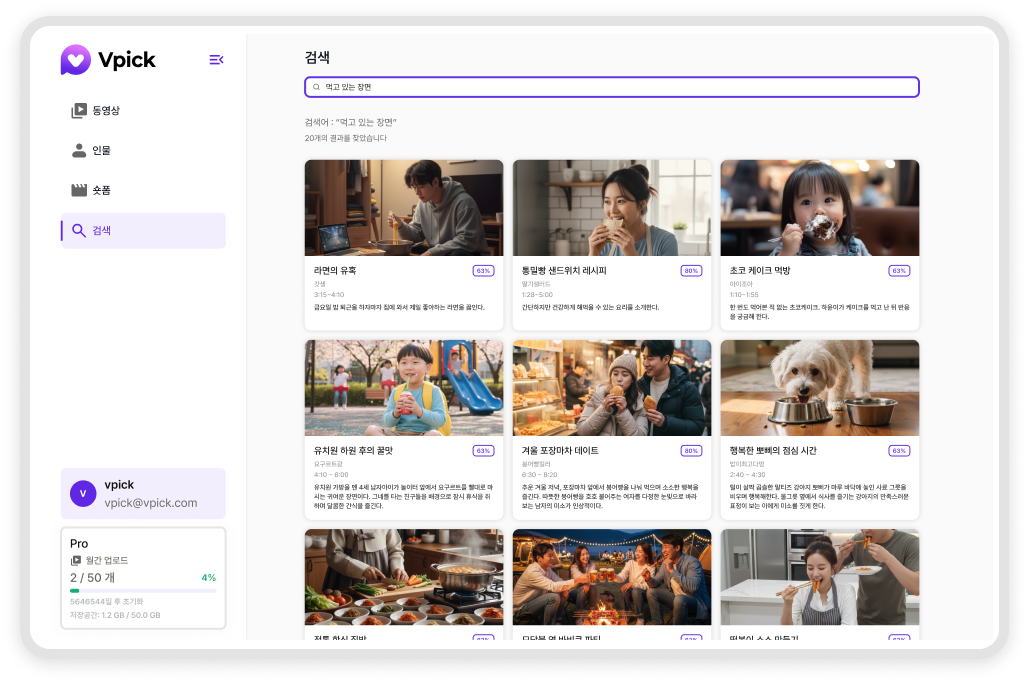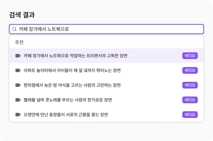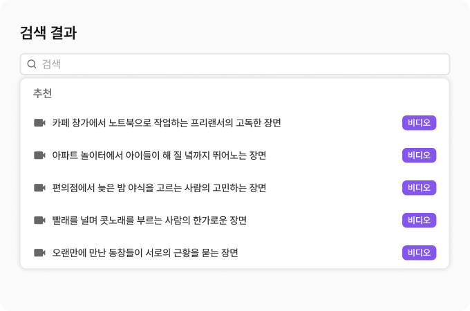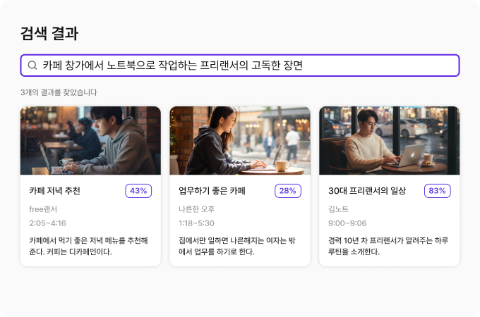검색된 장면은 썸네일·설명·정확도와
