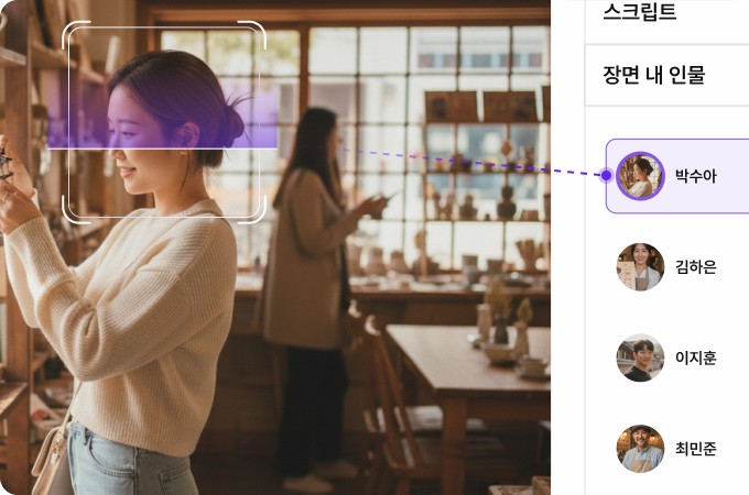 AI가 영상 속 등장 인물을 자동으로 식별해요.
