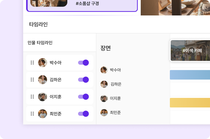 타임라인에 인물별 등장 시간대가